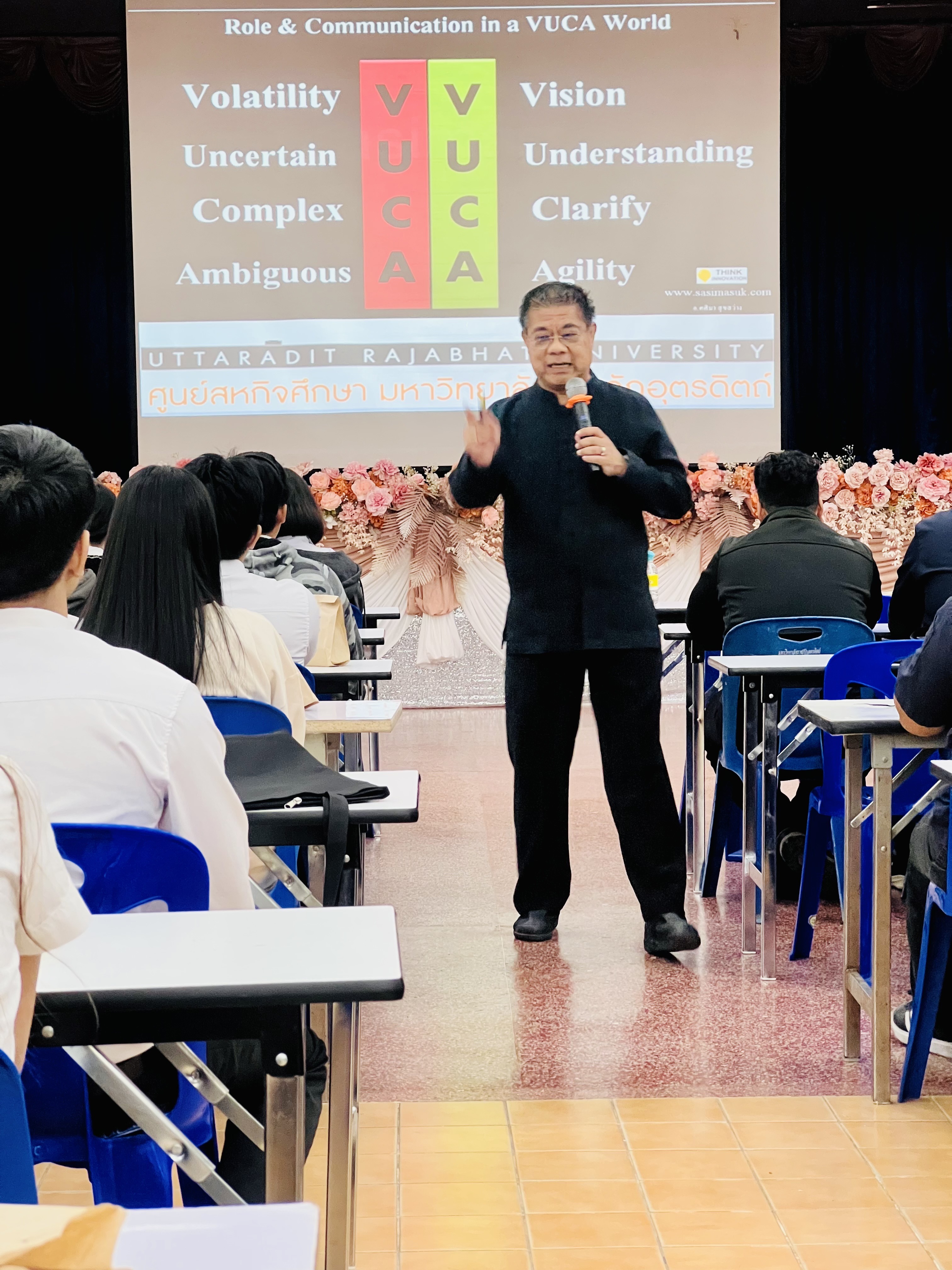 เมื่อวันที่ 17 มกราคม 2569 เวลา 8.00 - 12.00 น. ศูนย์พัฒนาคุณภาพการศึกษาบูรณาการกับการทำงาน จัดโครงการเตรียมความพร้อมนักศึกษาสหกิจศึกษาและการจัดการศึกษาเชิงบูรณาการกับการทำงาน (CWIE) หัวข้อ Meta Skill : ทักษะสำหรับสหกิจ ศึกษายุคตลาดแรงงานที่เปลี่ยนแปลงรวดเร็ว” ให้กับนักศึกษาชั้นปีที่ 3 ที่ลงทะเบียนรายวิชาการเตรียมประสบการณ์ภาคสนามและวิชาเตรียมความพร้อมสหกิจศึกษาและนักศึกษาทุกชั้นปีที่มีความสนใจ วิทยากรโดย ดร.อรรจน์ สีหะอำไพ นักวิชาการอิสระและ ที่ปรึกษาด้านพัฒนาองค์กร ภาครัฐและเอกชน โดยได้รับเกียรติจากผู้ช่วยศาสตราจารย์ ดร.สุกัญญา รุจิเมธาภาส ผู้ช่วยอธิการบดี เป็นประธานเปิดโครงการดังกล่าว เพื่อเตรียมความพร้อมและสร้างแรงบันดาลใจในการเรียนและการทำงานให้กับนักศึกษา ให้มีความรู้และประสบการณ์ในการทำงานก่อนก้าวเข้าสู่ตลาดแรงงานจริงอย่างมีประสิทธิภาพ โดยในวันนี้มีนักศึกษาเข้าร่วมโครงการ จำนวนทั้งสิ้น 550 คน ณ หอประชุม มหาวิทยาลัยราชภัฏอุตรดิตถ์